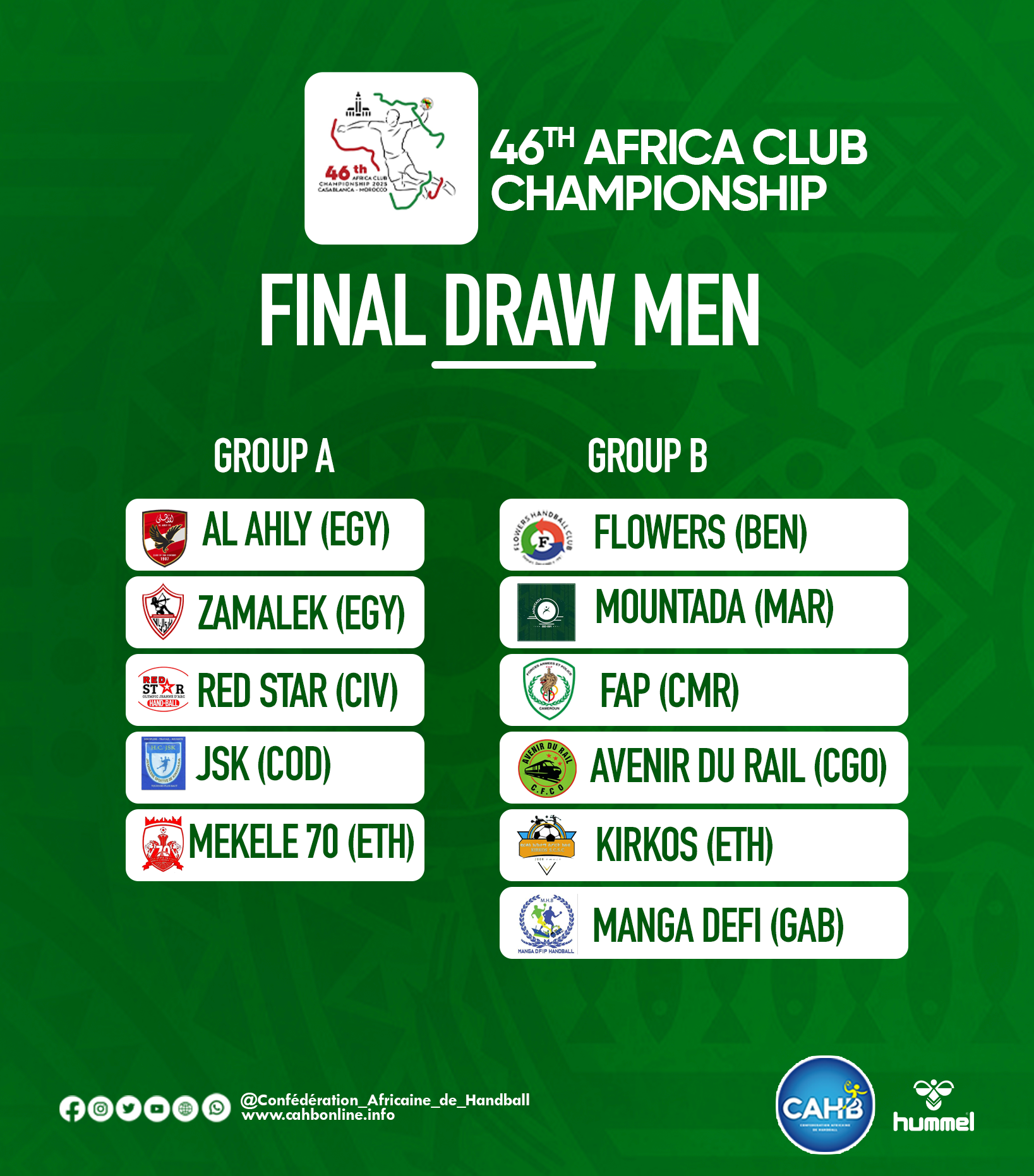 46 CACC, Casablanca 2025 : le résultat du tirage au sort des groupes !