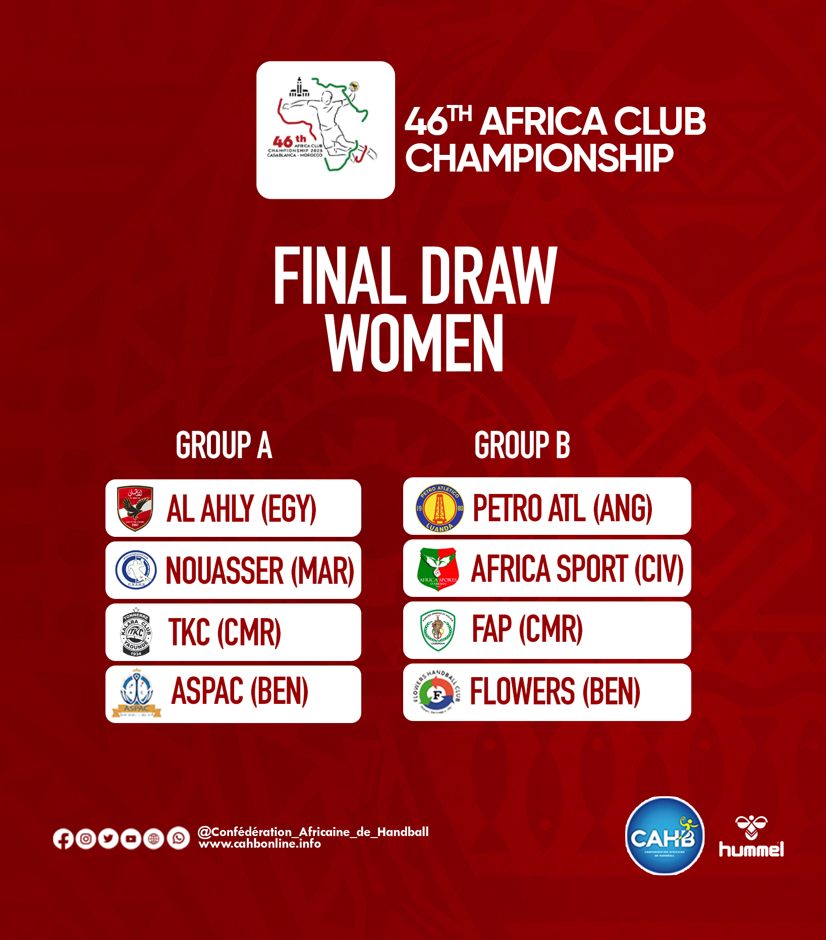 Le tirage au sort final de la 46ᵉ édition de la Coupe d’Afrique des Clubs Champions qui s’est déroulé à Casablanca (Maroc) le vendredi 12 septembre 2025, a défini des poules équilibrées et prometteuses pour les compétitions féminines et masculines.